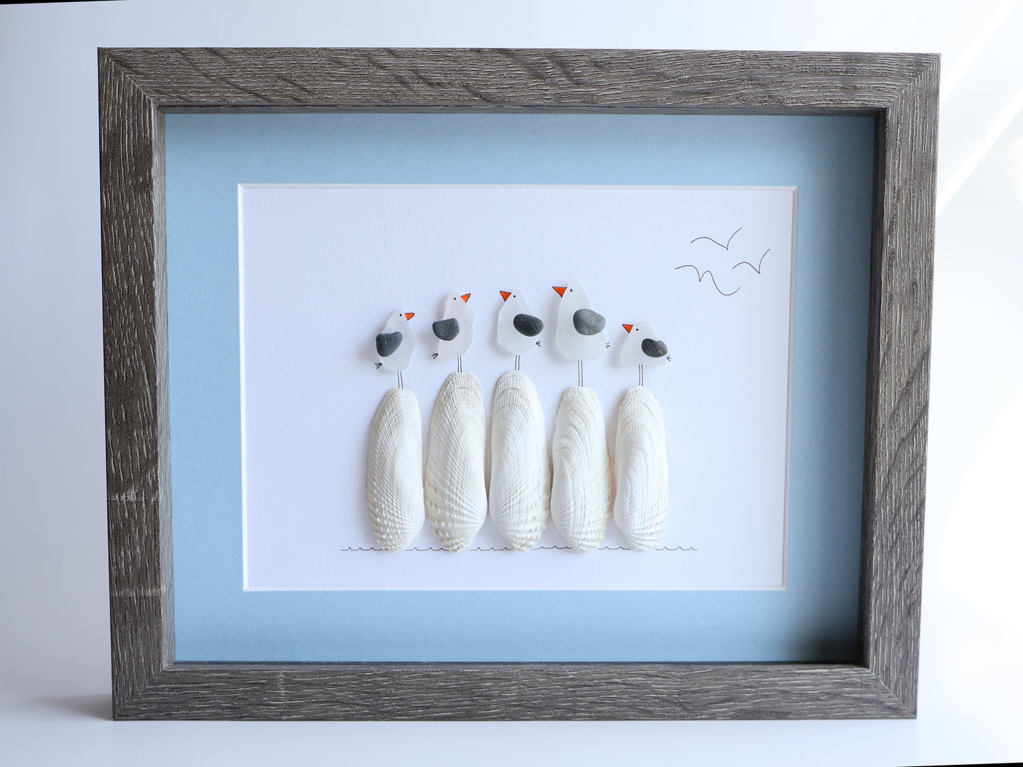 Five Sea Glass Seagulls on Razor Clam