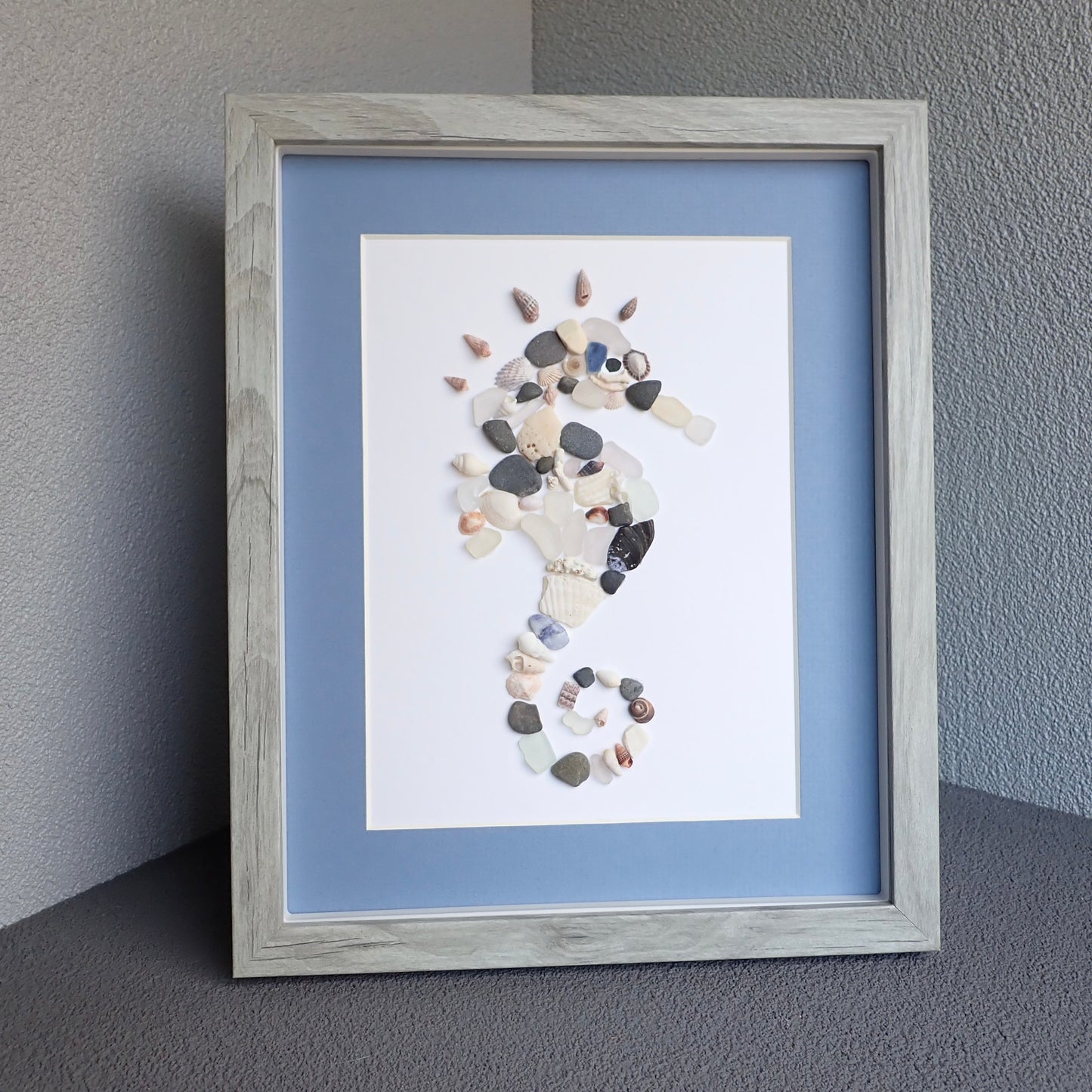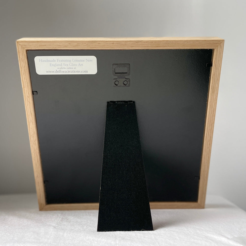 Aqua Sea Glass Heart Mosaic with Pottery, Shells & Coral